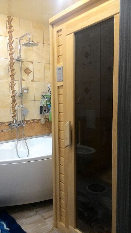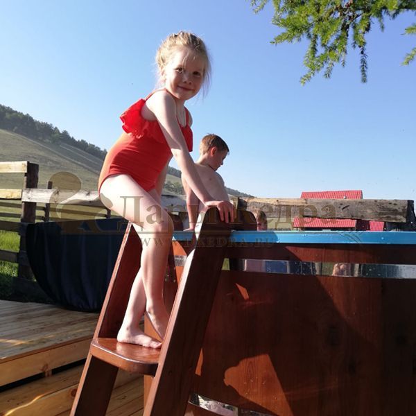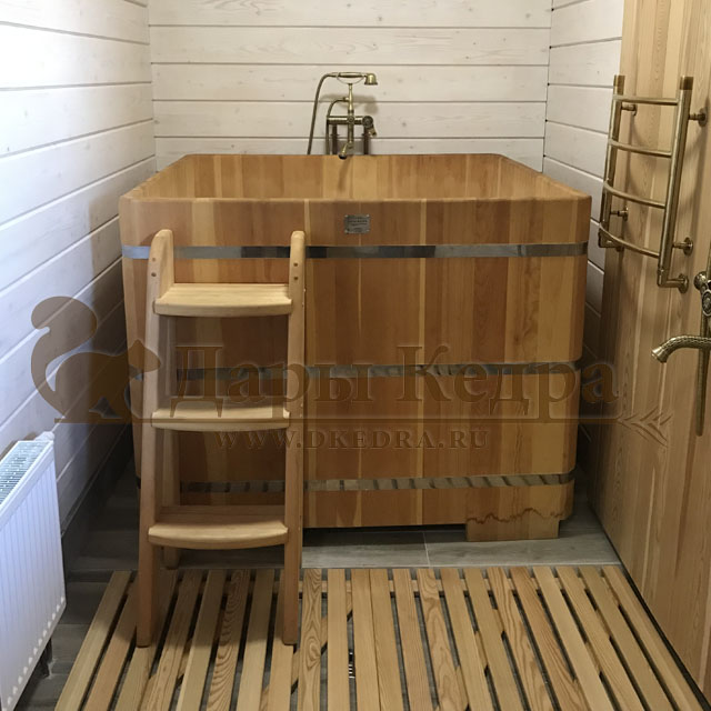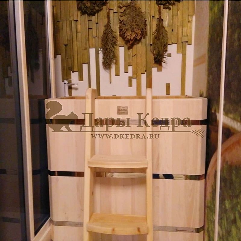 Купель идеально вписалась в помещение. Мини-бассейн из кедра - полезно, весело и практично! Рекомендую!