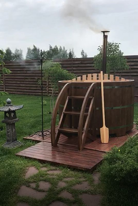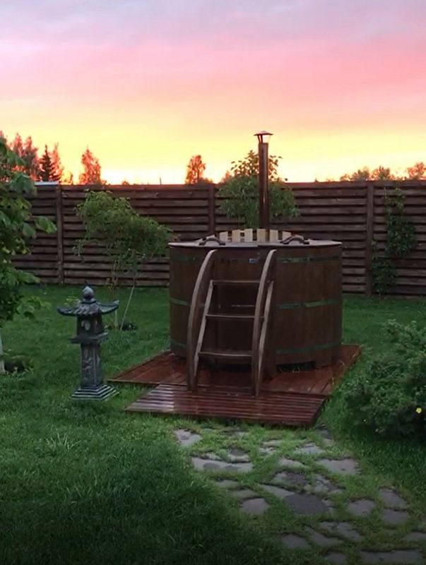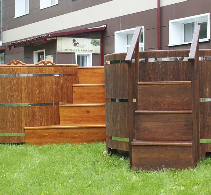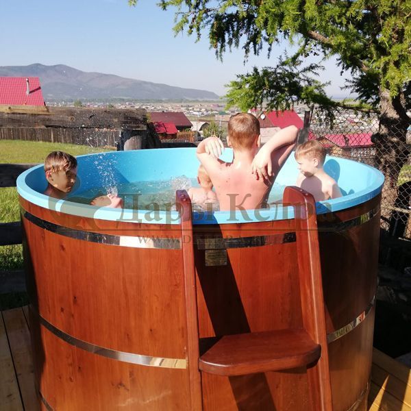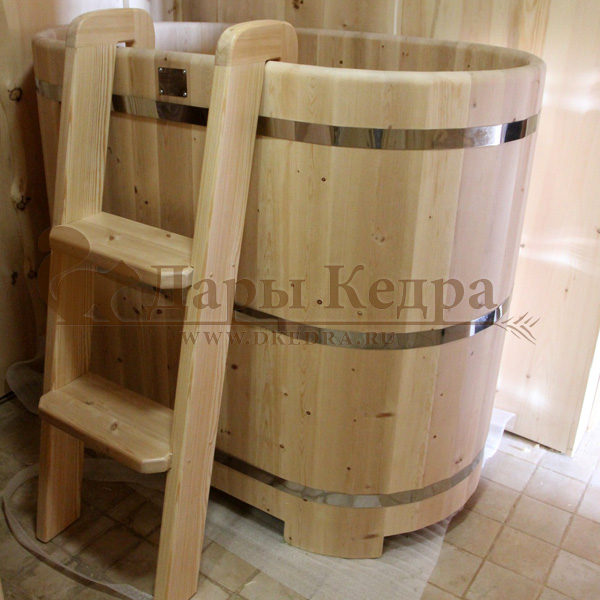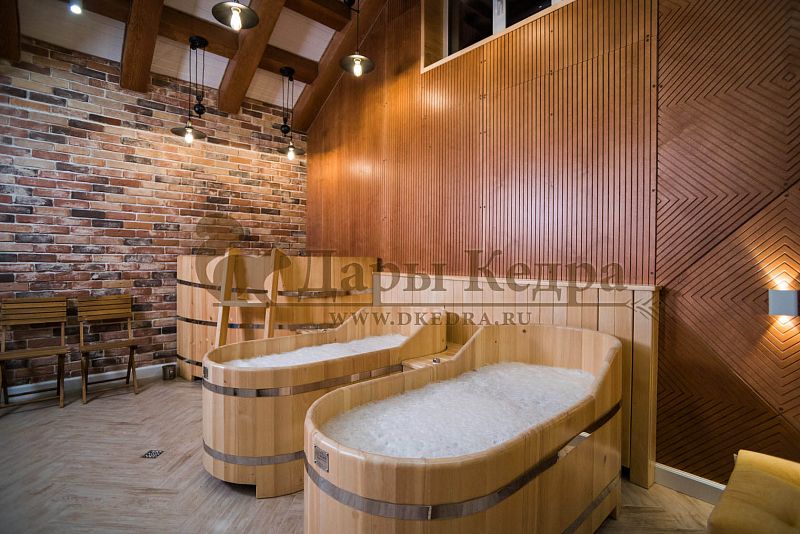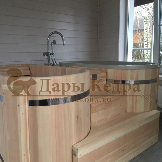 Заказывали себе домой две ванны с подиумом: одна ванна с пластиковой вставкой для более частого использования, вторая ванна-просто из кедра, так захотел муж, чтобы разные ванны были. После бани окунуться в прохладную водичку в ванной - это чудо! И с ними, кстати, намного уютнее стало.