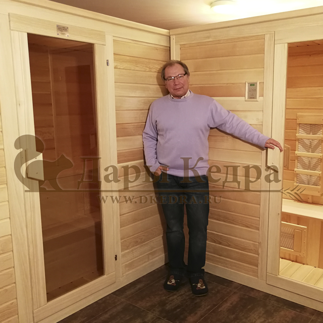 С того момента, как я установил в цокольном этаже 2 сауны, в мой кирпичный дом пришёл фантастический дух кедра! Этот воздух явно улучшает настроение и состояние. Что уже говорить о самом банном процессе в кедре! Я очень рад, что решил приобрести и финскую, и инфракрасную сауны. Кстати, в финской я установил печку с парогенератором, что дало возможность превращать сауну в русскую парную. Хочу отметить превосходное качество работы фирмы «Дары Кедра». Всё очень чётко подогнанно, отшлифованно, продуманно. Спасибо!
