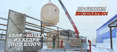Закажите 4, 5 или 6 метровую баню-бочку сейчас и получите её в полностью собранном виде в свой город, при этом не заплатив ни копейки за доставку!