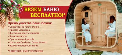 При заказе любой традиционной бани или бани-бочки до 31 мая 2018 г. - бесплатная доставка во все города России!*