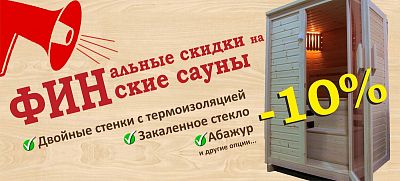 Скидку 18% можно забронировать на выбранную Вами сауну, внеся всего 10% от стоимости изделия! Мы изготовим и доставим долгожданную сауну в то время, когда будет удобно Вам!