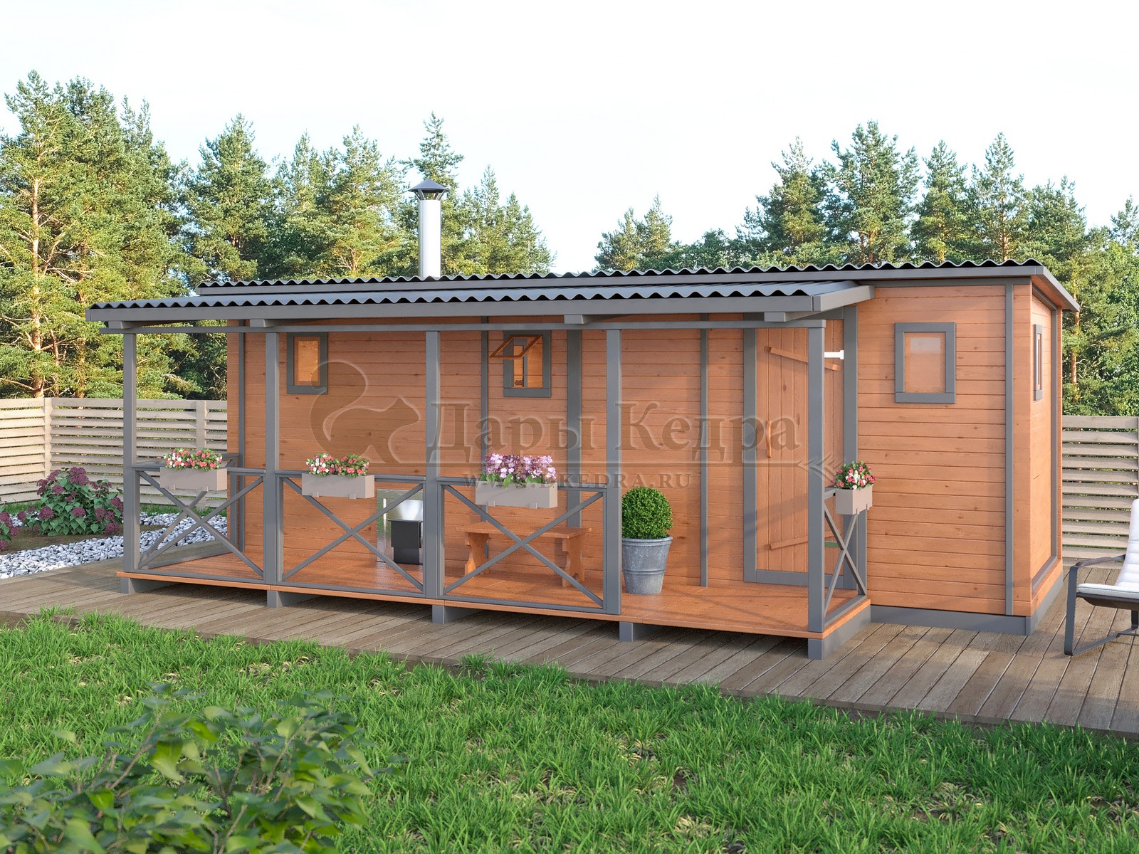 Каркасно-щитовая баня из кедра «Макси» с верандой