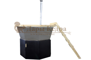 Банный чан из нержавеющей стали Ø-2000 на подставке с ветрозащитой и печью СТ3