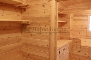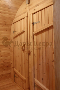 Козырек из кедра - это защита входа в баню и всего фасада от лишней влаги, что, конечно, лучшим образом скажется на красоте и долговечности дерева.