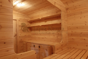 При обустройстве кемпинг-домов и габаритных бань (эксплуатация в качестве летнего домика) обратите внимание на шкаф, он точно вам пригодится для размещения вещей. Внутри - полки и штанга для аккуратного размещения одежды. Высота - 1,8 м, ширина - 0,9 м, глубина - 0,45 м.
