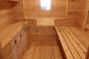 Данная опция позволяет доставить баню в труднодоступные места, куда выгрузка в собранном виде невозможна. Комплект для сборки обязательно полностью собирается на производстве, во избежание любых, даже малейших несостыковок, затем разбирается и нумеруется каждая деталь. Процесс сборки бани занимает примерно 1-2 дня, силами 2-3 человек (в зависимости от размера бани).
