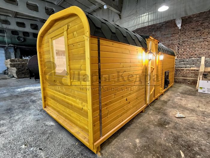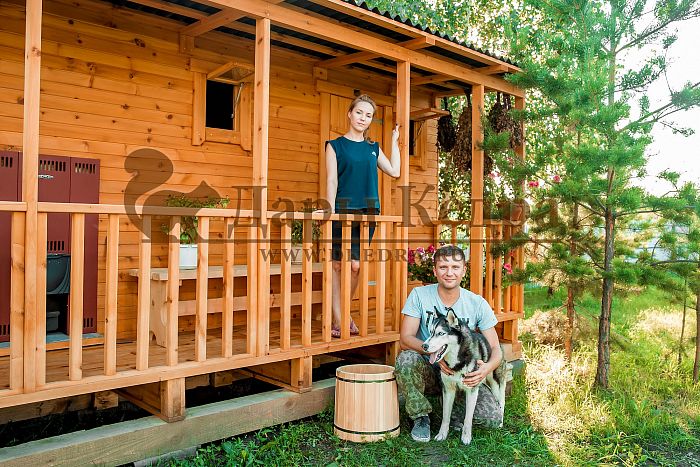 Проекты каркасно-щитовых строений выглядят более стандартно, тем не менее по внутреннему благоустройству они не уступают в комфорте бочкам. По индивидуальному согласованию с заказчиком возможно увеличение площади комнаты отдыха и террасы. На террасе можно расположить садовую мебель, что позволит совместить функционал парной с беседкой. Таким образом, покупая одно изделие, вы получаете баню и комфортную зону для расслабления как внутри помещения, так и снаружи. Далее, в галерее представлены варианты таких проектов. Вы можете выбрать понравившийся и оставить заказ прямо сейчас у нас на сайте. Покупка кедровой бани у производителя - это заведомо выгодно, надёжно и индивидуально согласно Вашим желаниям.