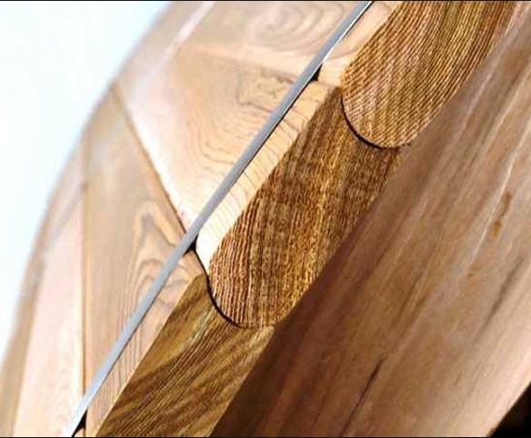 Сначала устанавливаются несущие опоры под баню, далее по середине монтируется центральная доска, от которой и пойдет сбор клепок в обе стороны. Главное в сборке круглой парилки не спешить, делать всё аккуратно, чтобы не было смещений. Как только собрано дно парной, его можно обработать снаружи и внутри антикоррозийными пропитками, чтобы защитить дерево от дальнейшей излишней влаги. После чего устанавливаются перегородки и далее завершается сборка клёпки по кругу с последующим стягиванием обручей. Весной обручи рекомендуется подтянуть при необходимости. Установка печи, полков, подключение к электричеству являются завершающими этапами в сборке мобильной круглой парилки.