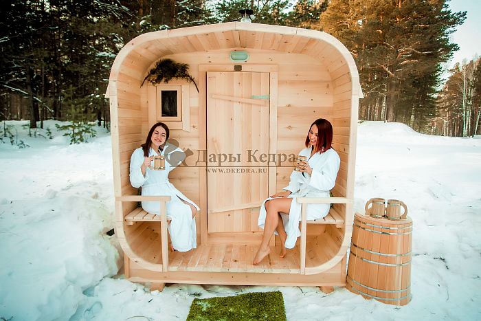 Подведем итог, если на участке не хочется видеть долгую стройку, кучу строительного мусора, а хочется сразу созерцать красивое уютное строение, то идеального варианта, чем баня-бочка, не найти. Но в любом деле, казалось бы без изъяна, обязательно он найдется. Этим изъяном является относительная стеснённость внутреннего пространства бочки. Даже если брать самую большую длину подобных сооружений, то это будет 6 метров. Развернуться на них большой компании довольно проблематично. Но 2-4 человека вполне смогут принимать оздоравливающие банные процедуры одновременно. А большинство семей и не ходят в баню в количестве больше, чем 2-3 человека. Поэтому баня-бочка так быстро завоевала сердца как опытных парильщиков, так и начинающих. Мобильные банные конструкции пользуются популярностью как в холодных районах нашей страны, куда затруднена доставка леса, и люди собственноручно не имеют возможности построить капитальное сооружение, так и в теплых областях с умеренным климатом.