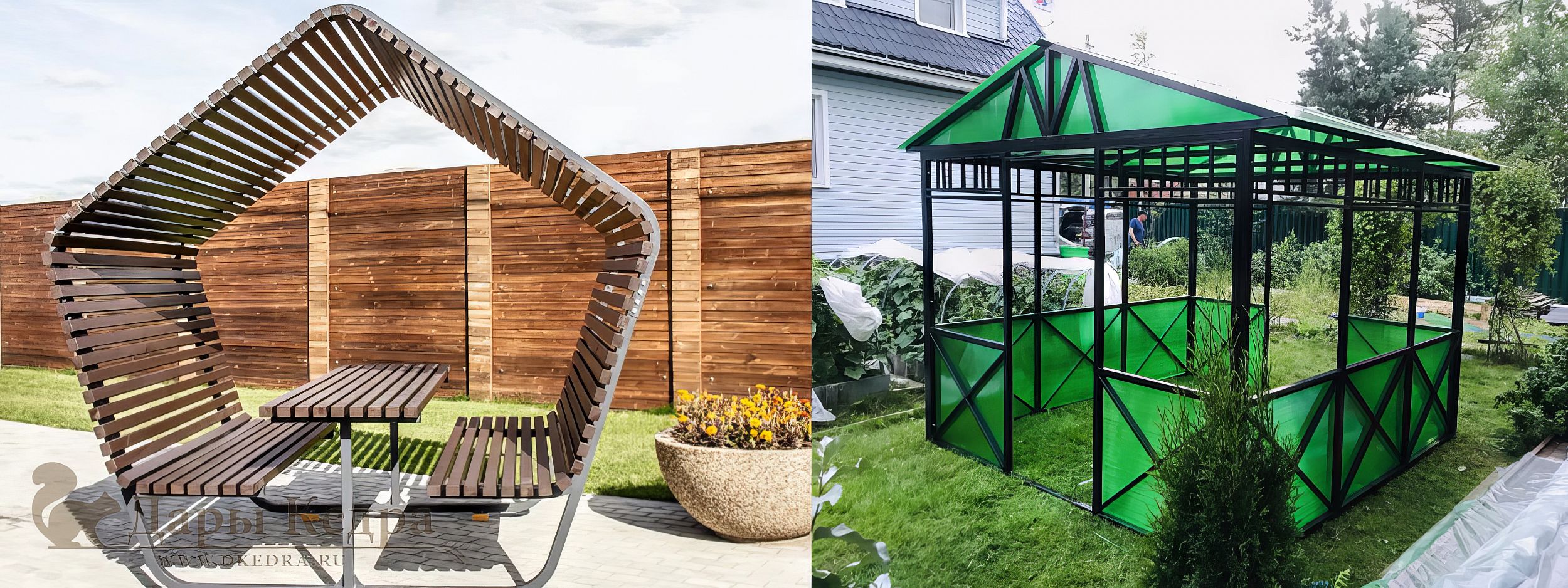 Хочется отметить, что беседки из металла сочетаются абсолютно с любым ландшафтным дизайном, на зелёном газоне смотрятся конструкции ярко, изящно и стильно. Сиденья, как правило, выполнены из дерева. Покупая садовую мебель из стали от производителя, Вы получаете сразу готовый товар к эксплуатации, где все деревянные элементы уже будут пропитаны антикоррозийной пропиткой. Тем не менее, даже при имеющемся покрытии, необходимо раз в год обновлять покрытие самостоятельно для увеличения срока службы изделия. Также рекомендуем сочетать покупку стальной беседки с мангалом в едином стиле. Мангалы от производителя могут выполнены по Вашему заказу любых размеров и форм. Наша работа построена, прежде всего, на удовлетворении ваших потребностей и комфортном отдыхе на природе!
