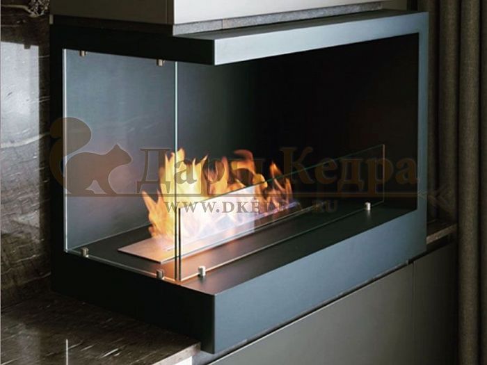 - Биокамин работает на биотопливе, которое при горении выделяет водяной пар и углекислый газ. Эти вещества выдыхает человек. Поэтому камин безвреден, от него нет запаха и дыма.