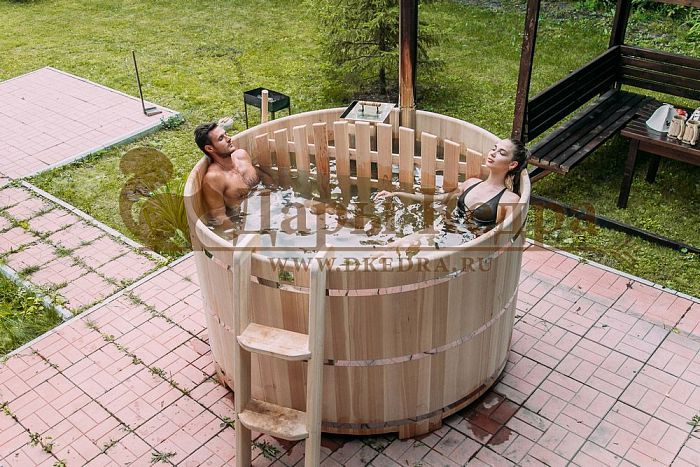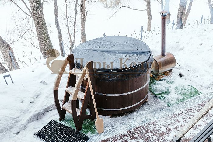 Общий принцип подготовки купели к парению в любое время года одинаков. Сначала потребуется наполнить купель водой, далее растопить печь дровами или фирменными пеллетами "Дары Кедра". Чтобы ускорить процесс подогрева воды до 37-39С необходимо воспользоваться веслом и термокрышкой. С помощью весла нужно постоянно смешивать верхние теплые слои с нижними холодными, таким образом происходит постепенный равномерный прогрев по всей поверхности. Термокрышка позволит теплу оставаться внутри, а не выходить наружу. Также она сохранит поверхность воды чистой. Летом уйдет примерно 3-4 часа на подготовку купели к парению, если считать время от начала наборы воды и до момента погружения людей в воду.
